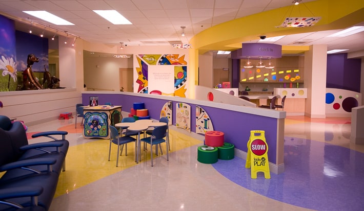 Renown Health remodeled their vacated Emergency Department Waiting Room for the use by their Children’s Hospital. The process was an enjoyable one, as who wouldn’t love designing for children and ‘tweens? The finishes are vibrant and durable and thought was taken to include interesting components including the refurbished fire hydrant and the see-through panels on the low wall. This room was definitely a success!